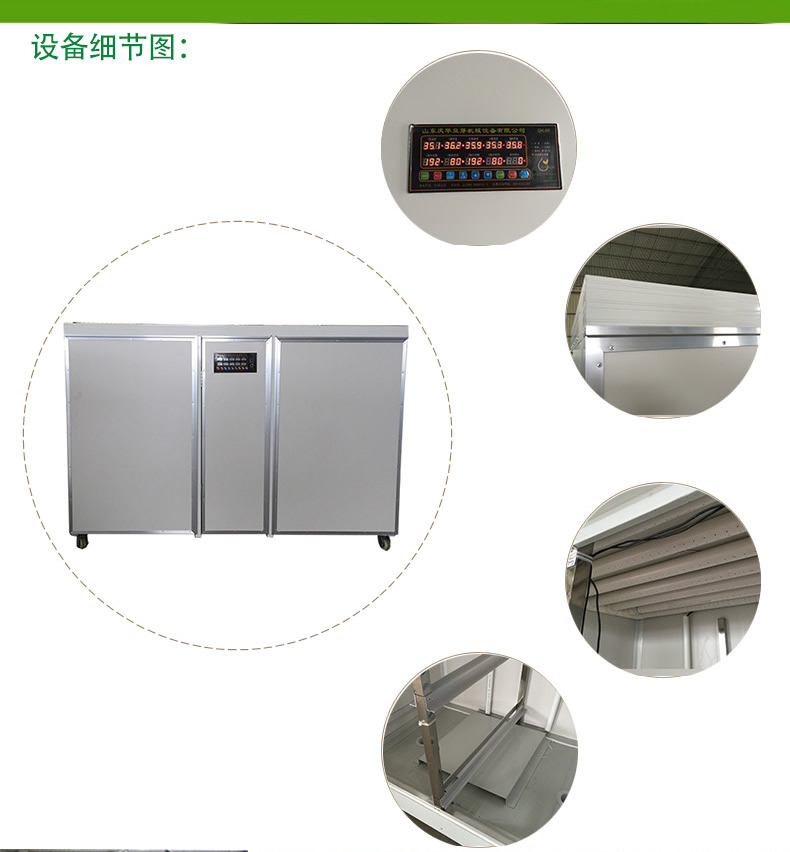 對(duì)來本廠購(gòu)機(jī)的客戶,我們專車到車站接送,并報(bào)銷一部分來回火車票、汽車票,在本工廠參觀學(xué)習(xí)期間,免費(fèi)提供食宿,我們以“我誠(chéng)信、你放心”經(jīng)營(yíng)理念與客戶建立和諧的、共發(fā)展共榮辱的合作關(guān)系,讓我們的產(chǎn)品去說話! 我工廠內(nèi)擁有大型豆芽生產(chǎn)車間,常年生產(chǎn)豆芽和特色芽苗菜,每天出產(chǎn)豆芽4000斤以上,銷往青州孟七農(nóng)貿(mào)市場(chǎng)和各大及學(xué)校食堂,歡迎各界朋友來我處參觀考察,將現(xiàn)場(chǎng)試機(jī)和免費(fèi)培訓(xùn)生產(chǎn)技術(shù)。 工廠內(nèi)大型培育基地,免費(fèi)培訓(xùn)30多種芽苗菜生產(chǎn)技術(shù)! 歡迎來我們工廠考察、學(xué)習(xí)、合作、共贏~! 1、型號(hào)參數(shù): 產(chǎn)品型號(hào):YJ-1200A (該機(jī)器有 一機(jī)單控、一機(jī)雙控、一機(jī)四控) 電源電壓(V):220 總功率(KW):3 總?cè)萘?KG):2400 日產(chǎn)量(KG):600 日耗電(度):28 日耗水(m3):7 外形尺寸(m):4.6×1.4×1.9 (長(zhǎng)×寬×高) 整機(jī)重量(KG):720 機(jī)內(nèi)有80個(gè) 育芽箱 2、主要用途: 廣泛適用于中型戶