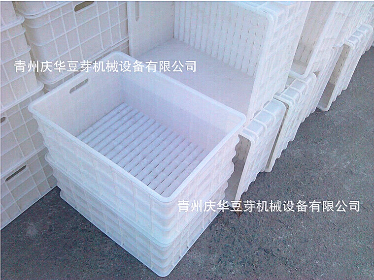 2、主要用途: 廣泛適用于大型戶 3.豆芽生產(chǎn)流程: 選擇芽豆 →→ 對豆種清洗并做無菌處理 →→ 浸種(適宜水溫) →→ 裝機(每箱約5斤干豆) →→ 啟動豆芽機,設(shè)定合理參數(shù) →→ 對育芽室做無菌處理 →→ 1天后觀察豆芽生長情況 →→ 2天后觀察豆芽生長情況 →→ 3天后觀察豆芽情況 →→ 4天后收獲豆芽 →→ 豆芽清洗后包裝,上市。 4、豆芽機制造流程: 5、豆芽機產(chǎn)品特點: 5)減少爛芽現(xiàn)象。豆芽生長的爛芽現(xiàn)象多發(fā)生在培育后的三天左右,由于手工生產(chǎn)豆芽的周期長,易出現(xiàn)爛芽現(xiàn)象,然而采用豆芽機生產(chǎn),三天左右豆芽已經(jīng)成熟,可以采收食用,不會有爛芽現(xiàn)象發(fā)生。 6、豆芽機結(jié)構(gòu)特點及功能(可根據(jù)客戶需要訂做): 4)周轉(zhuǎn)箱的外徑尺寸:0.61m*0.44m*0.26m(長寬高),特點:波浪底,食品級的環(huán)保LLDPE材料,無味,結(jié)實不變形,不變色,承載強度大,長條形排水孔,豆芽不堵孔,不積水存水,透水效果好,防止?jié)穸冗^大而導(dǎo)致爛牙。 7、價格:價格即可購得